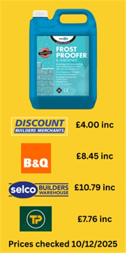 5ltr Accelerator & Frostproofer is a liquid additive formulated to accelerate setting and hardening times of mortar, concretes, screeds and rendering to provide frost protection during the setting period. Effective even in sub-zero temperatures and can also be used in normal temperatures where a rapid set is required and as a plugging admixture.